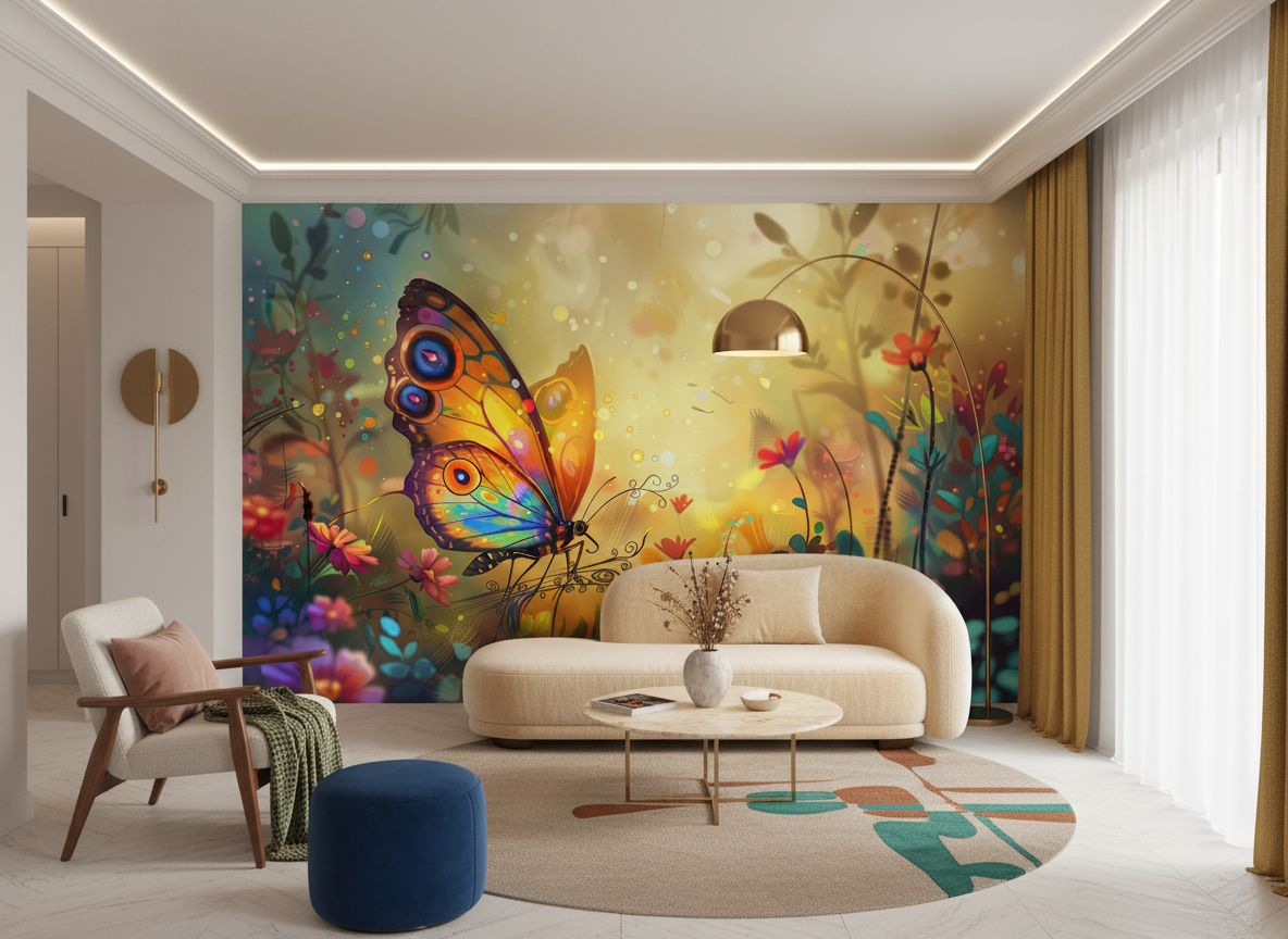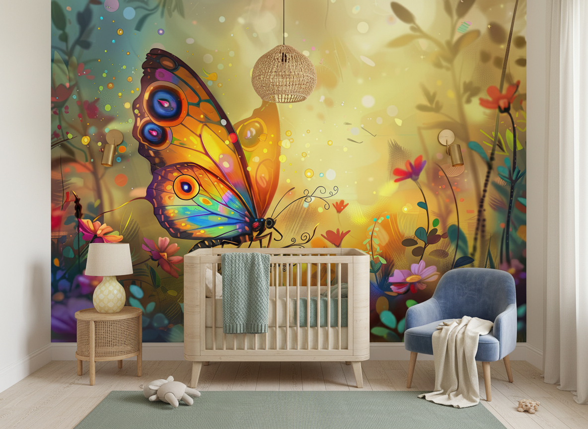 Plongez dans un jardin fantastique avec un papillon majestueux aux couleurs chatoyantes. Ce papier peint sur mesure transforme votre intérieur en un sanctuaire poétique et magique. Créez une ambiance unique qui invite à l’évasion.