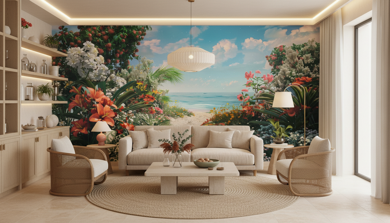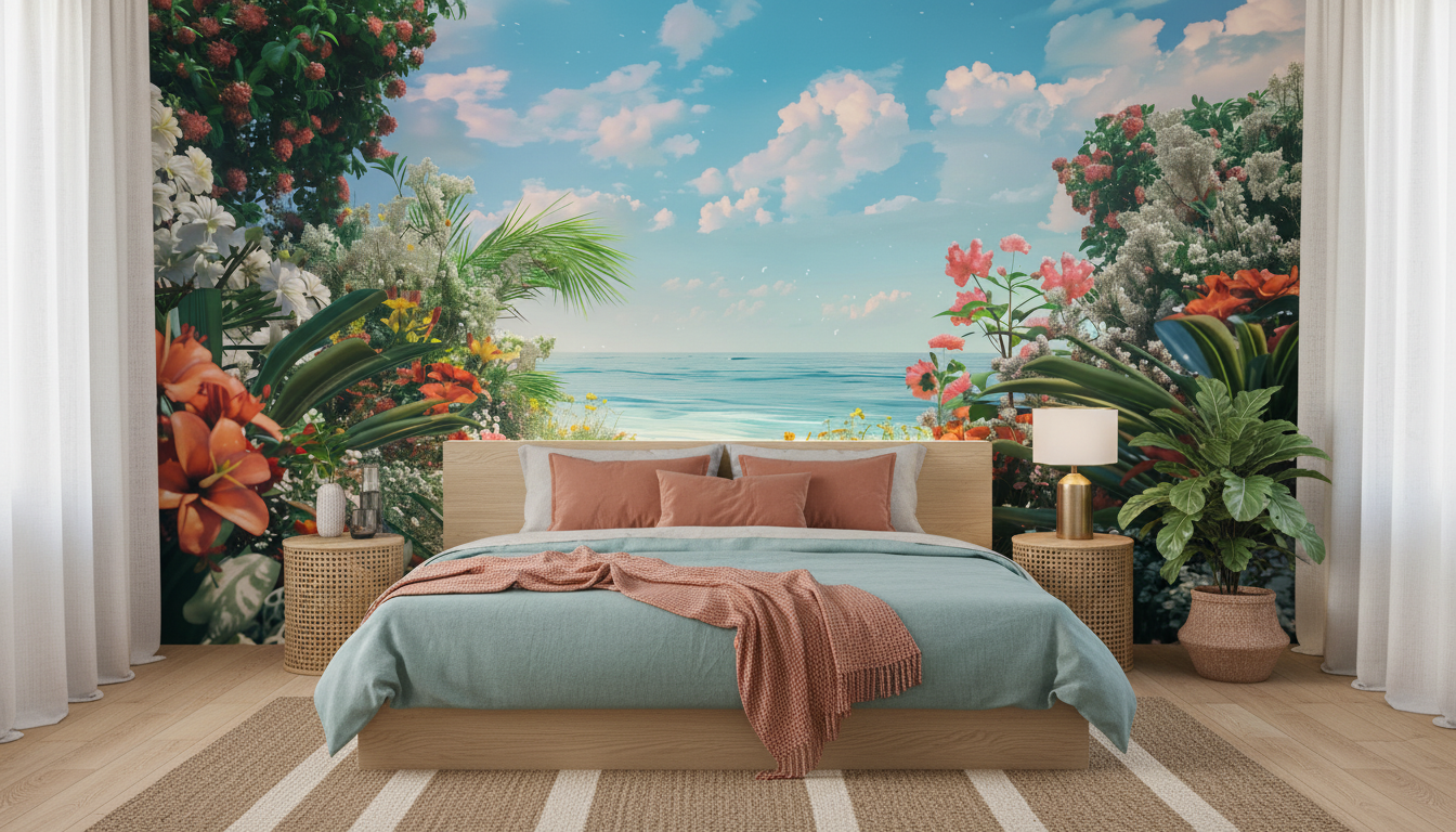 Ce papier peint paysage tropical diffuse une ambiance sereine et ressourçante, transformant n’importe quelle pièce en sanctuaire de détente. L’effet immersif est saisissant : on ressent presque la brise marine caresser la peau et le parfum enivrant des fleurs exotiques. Cette décoration murale apporte instantanément une dimension zen et apaisante, parfaite pour créer un cocon de tranquillité dans nos intérieurs urbains.
