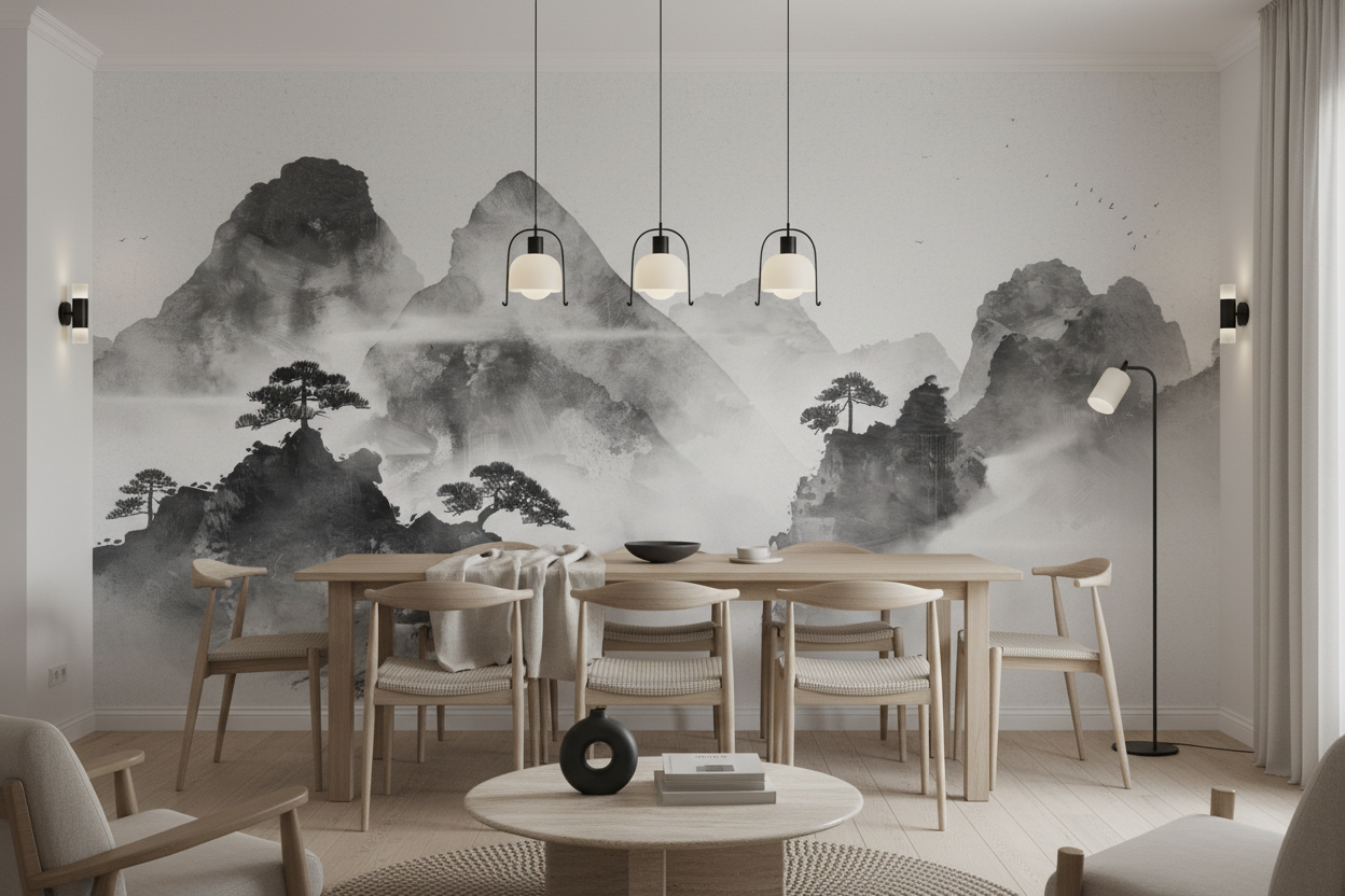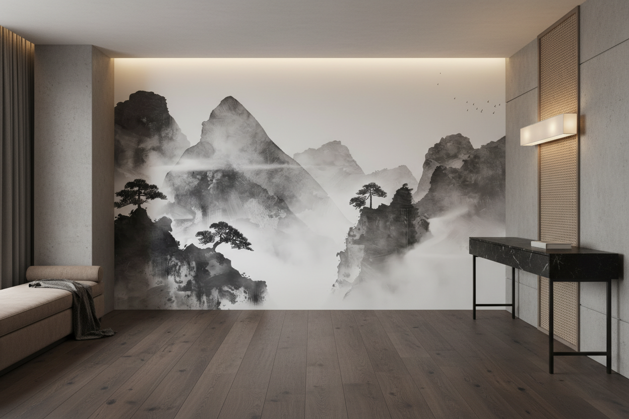 Ce papier peint paysage s’inscrit parfaitement dans les tendances décoratives actuelles qui privilégient le retour aux sources et la connexion avec la nature. Son style artistique oriental apporte une sophistication intemporelle qui traverse les modes, tandis que sa palette monochrome garantit une intégration harmonieuse dans tous les univers décoratifs, du plus traditionnel au plus contemporain.