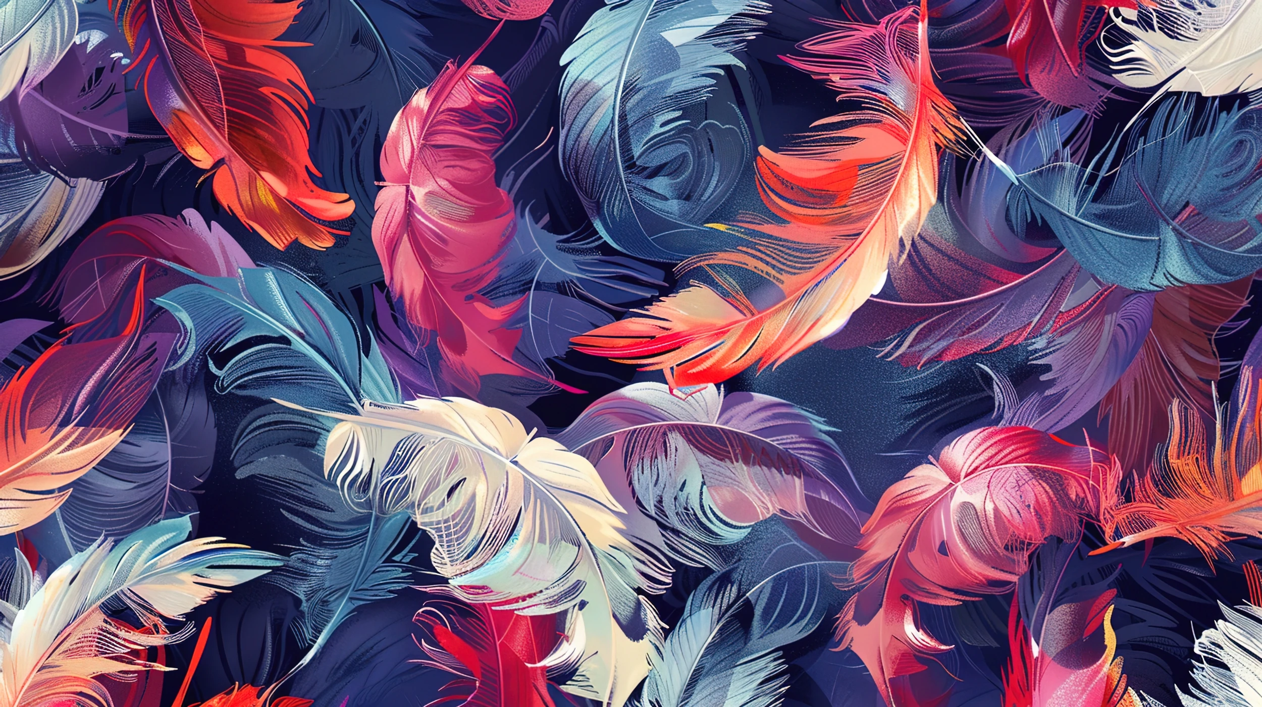 Ce papier peint plumes artistiques révèle un univers graphique sophistiqué où chaque élément semble suspendu dans l’espace. Les plumes stylisées aux formes organiques et fluides s’entremêlent harmonieusement, créant un motif répétitif d’une richesse visuelle exceptionnelle. Le style graphique emprunte aux techniques de peinture numérique moderne, mêlant réalisme et abstraction avec une maîtrise artistique remarquable.