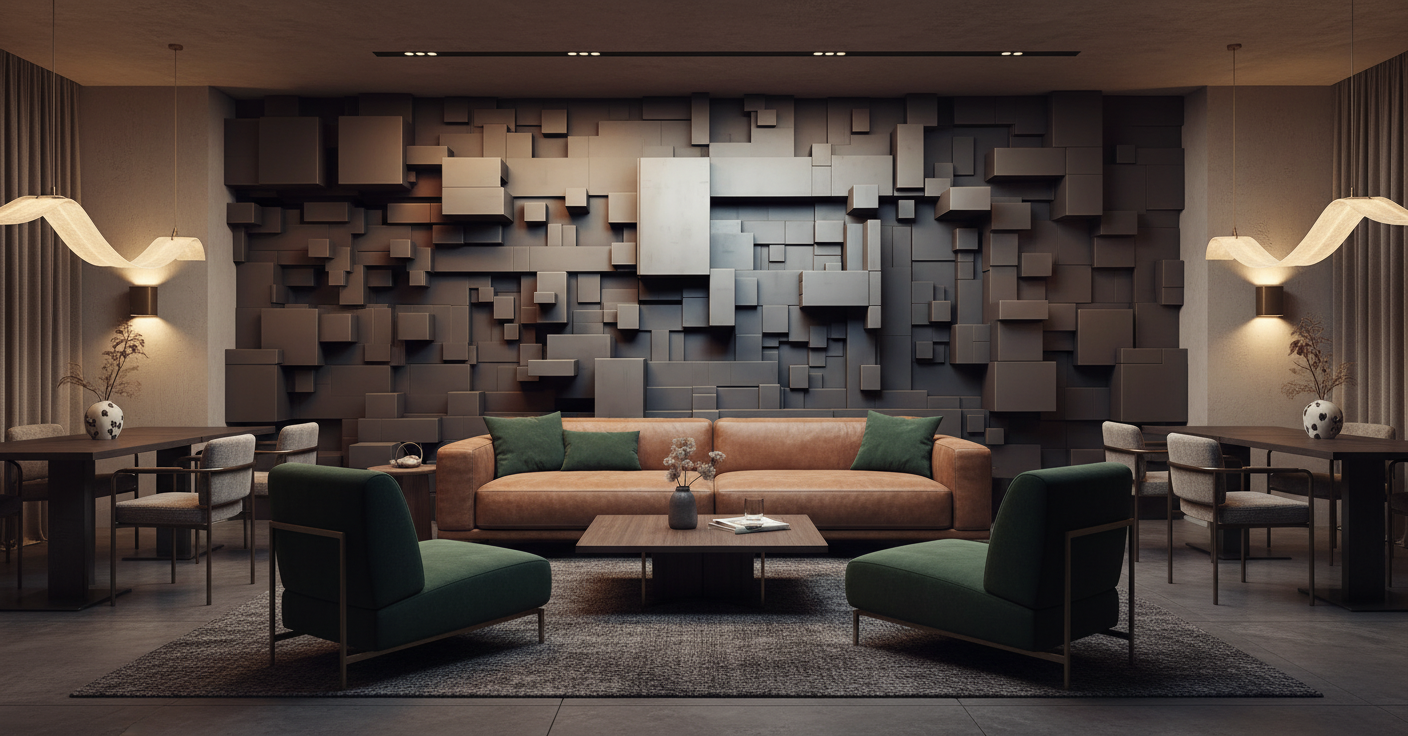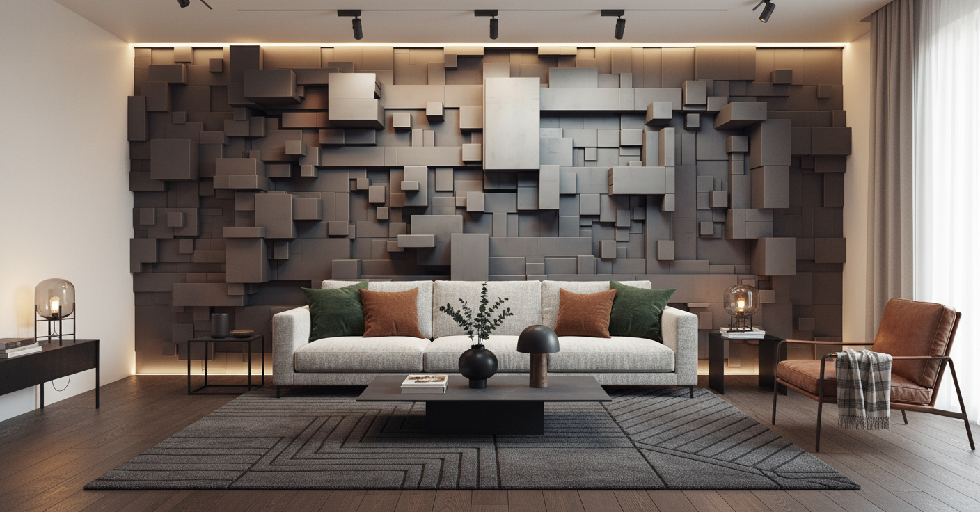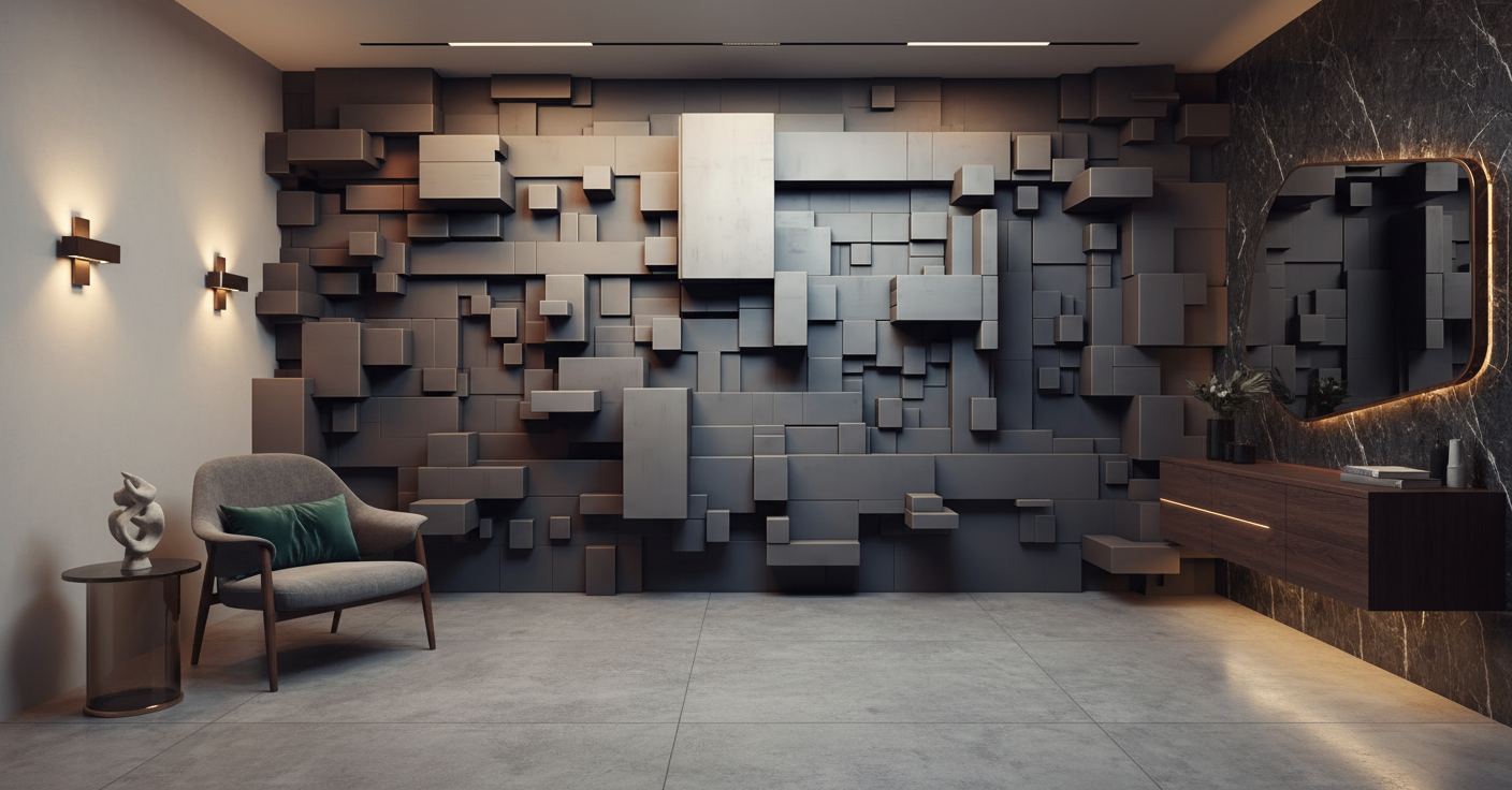 Les couleurs complémentaires idéales incluent les tons sourds et sophistiqués : anthracite profond, beige taupe, blanc pur ou encore les nuances de gris pierre. Cette décoration murale avant-gardiste s’intègre parfaitement dans les intérieurs minimalistes, les lofts industriels ou les espaces de vie contemporains recherchant une touche d’originalité architecturale.