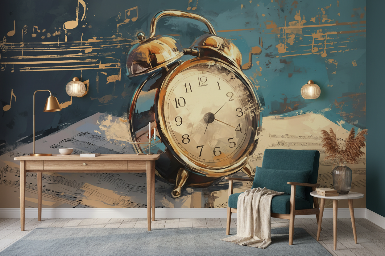 Papier Peint Réveil Musical Vintage – Symphonie du Temps
