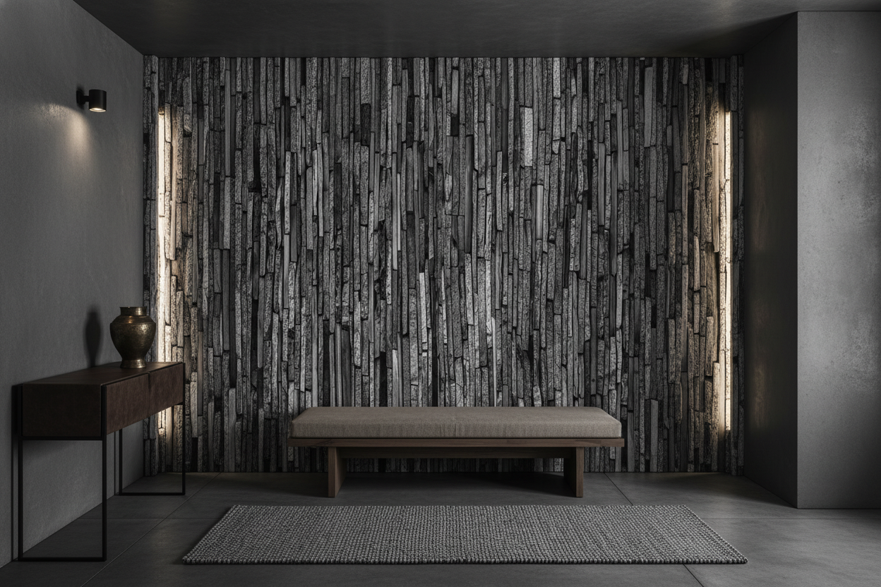 Plongez dans l’élégance brute de la pierre naturelle verticale. Ce papier peint effet relief moderne insuffle puissance et sérénité. Transformez votre intérieur en un sanctuaire au caractère unique.