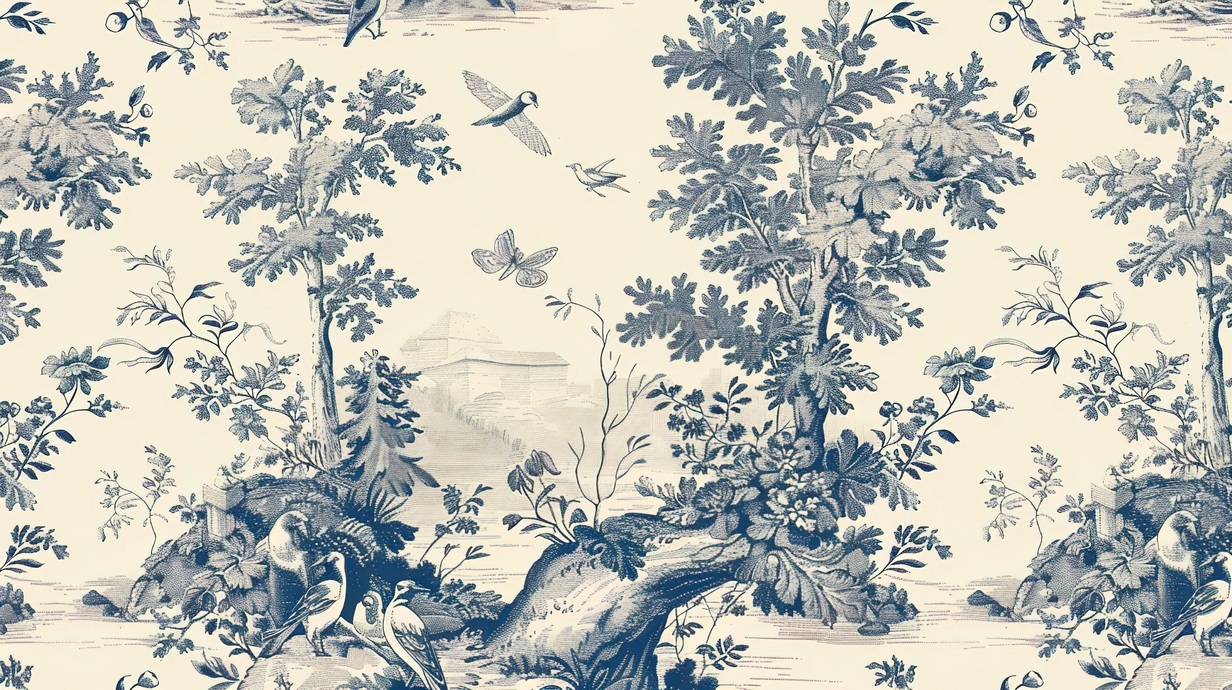 Le style gravure ancienne de ce papier peint nature évoque l’art délicat du XVIIIe siècle, où chaque trait révèle la virtuosité de l’artisan. Les motifs répétitifs s’entremêlent avec une harmonie parfaite, créant un paysage forestier continu qui transforme vos murs en fenêtre ouverte sur un monde enchanté. La technique rappelle les plus belles toiles imprimées de Jouy, avec cette précision du détail et cette poésie du trait qui caractérisent les papiers peints classiques.