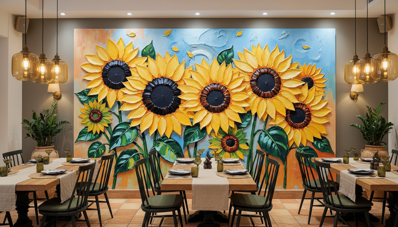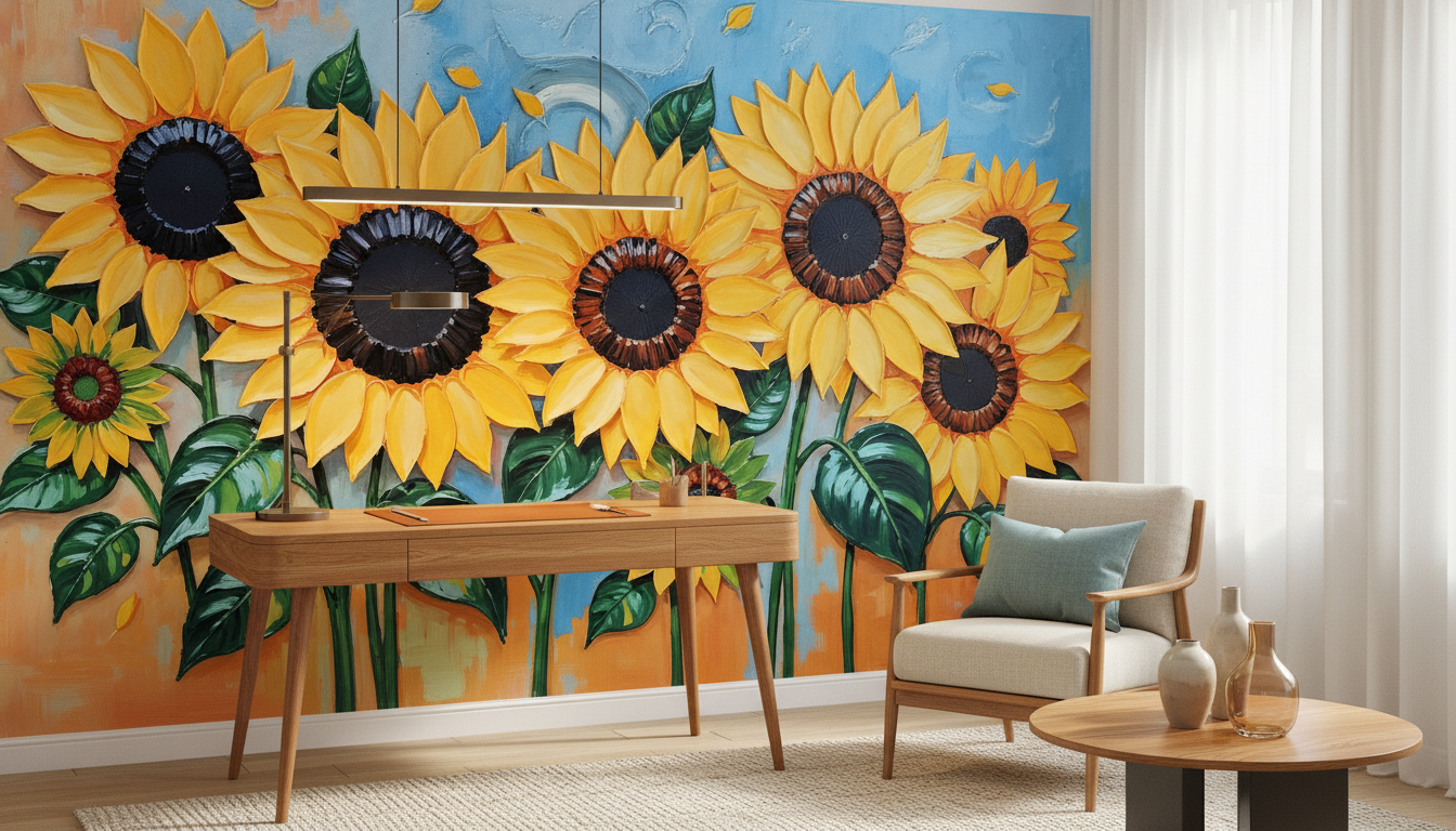 Cette fresque murale végétale diffuse instantanément une atmosphère chaleureuse et optimiste dans votre espace de vie. L’énergie positive des tournesols, symboles universels de bonheur et de vitalité, transforme chaque regard en moment de contemplation bienfaisante, insufflant une sensation de bien-être naturel et de connexion avec la nature.
