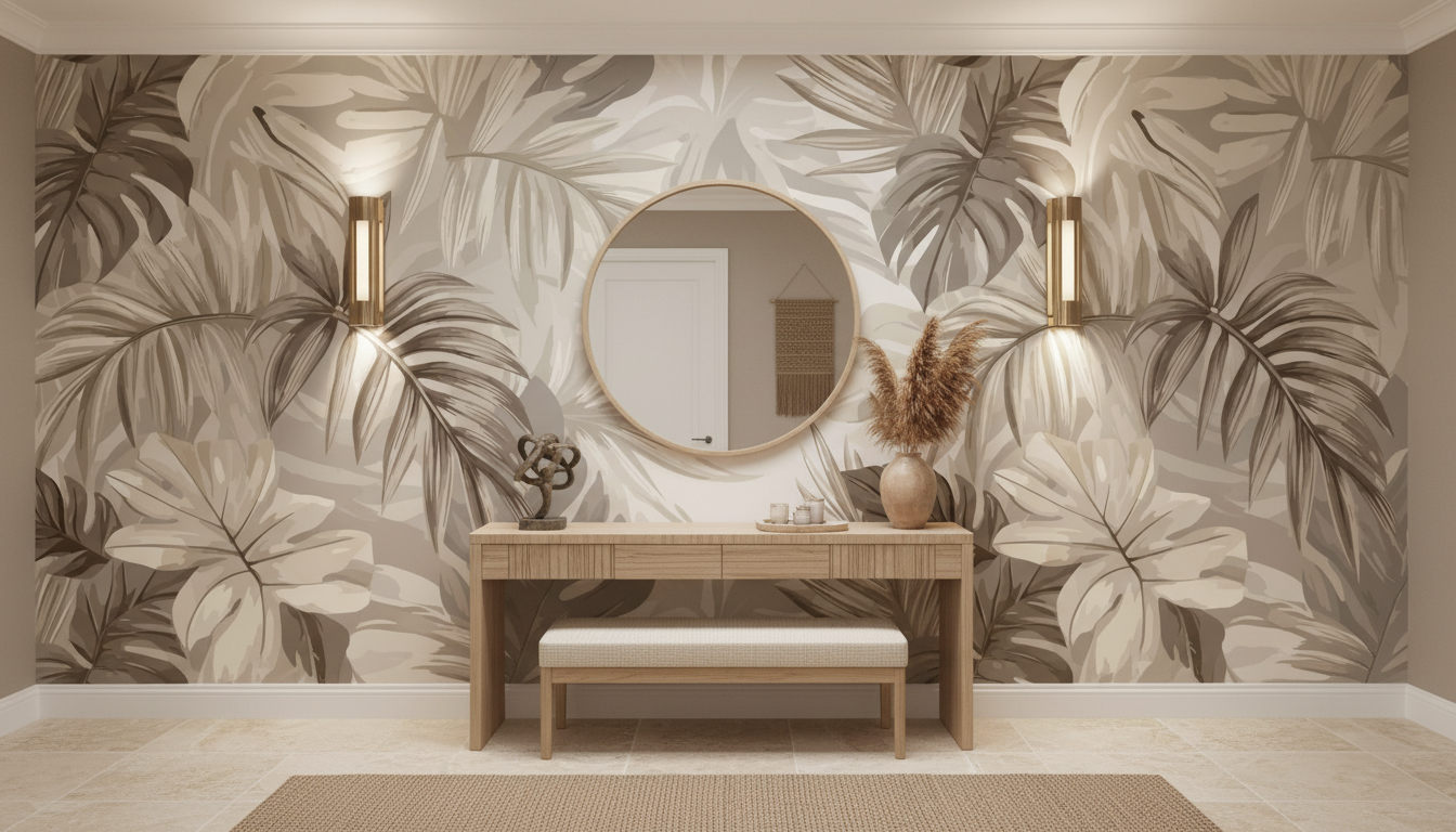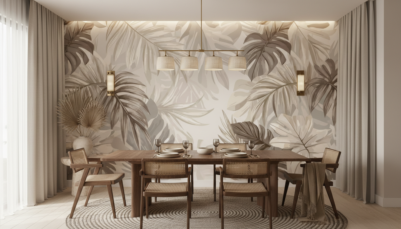 Ce revêtement mural tropical s’intègre idéalement dans une déco scandinave revisitée, un style bohème moderne ou une ambiance slow living. Il dialogue harmonieusement avec des matières naturelles comme le jute tressé, la céramique artisanale et les fibres végétales. Pour un effet accent wall saisissant, optez pour un pan de mur unique, sublimé par un éclairage indirect qui révélera toute la subtilité des reliefs botaniques.