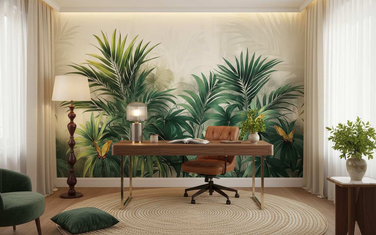 Laissez-vous transporter dans un jardin tropical où la nature déploie sa magnificence sous vos yeux, transformant votre intérieur en un sanctuaire végétal d’une élégance intemporelle.