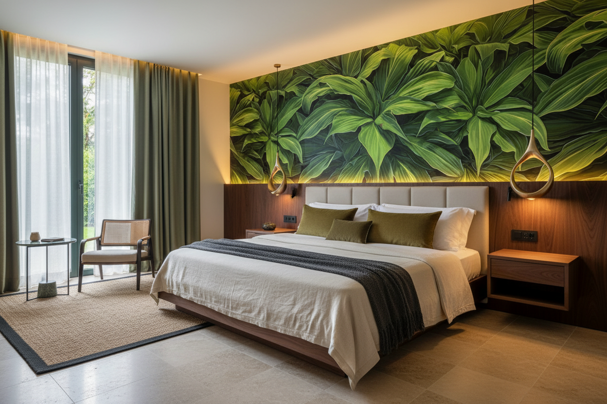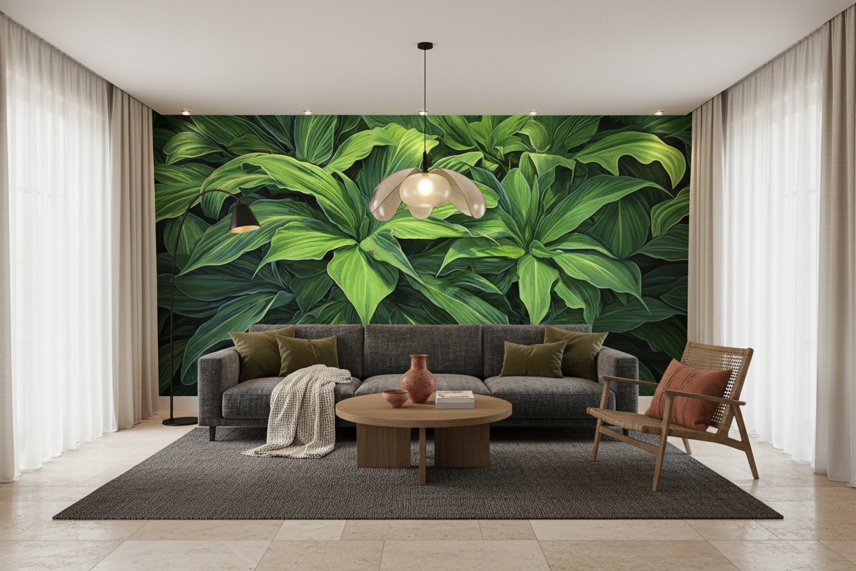 Un souffle de verdure luxuriante envahit votre intérieur, comme si la nature elle-même avait posé son pinceau sur vos murs pour créer une œuvre d’art végétale saisissante.
