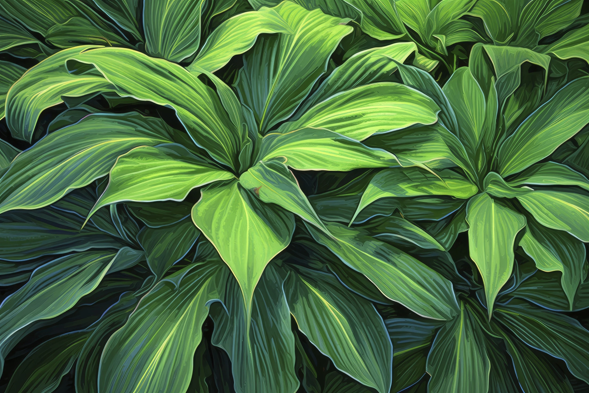 La palette chromatique oscille harmonieusement entre des verts émeraude profonds et des nuances chartreuse lumineuses, ponctuées de subtiles touches de vert jade et de tons lime acidulés. Cette symphonie de verts tropicaux crée un dégradé naturel qui évoque les sous-bois humides d’une forêt équatoriale, où la lumière filtrée caresse délicatement le feuillage.