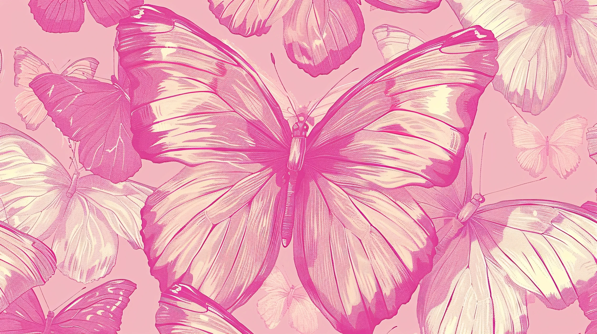 Laissez-vous emporter par la danse éthérée des papillons roses qui virevoltent dans un jardin de rêve aux teintes poudrées, où chaque battement d’aile semble suspendu dans un souffle de tendresse infinie.