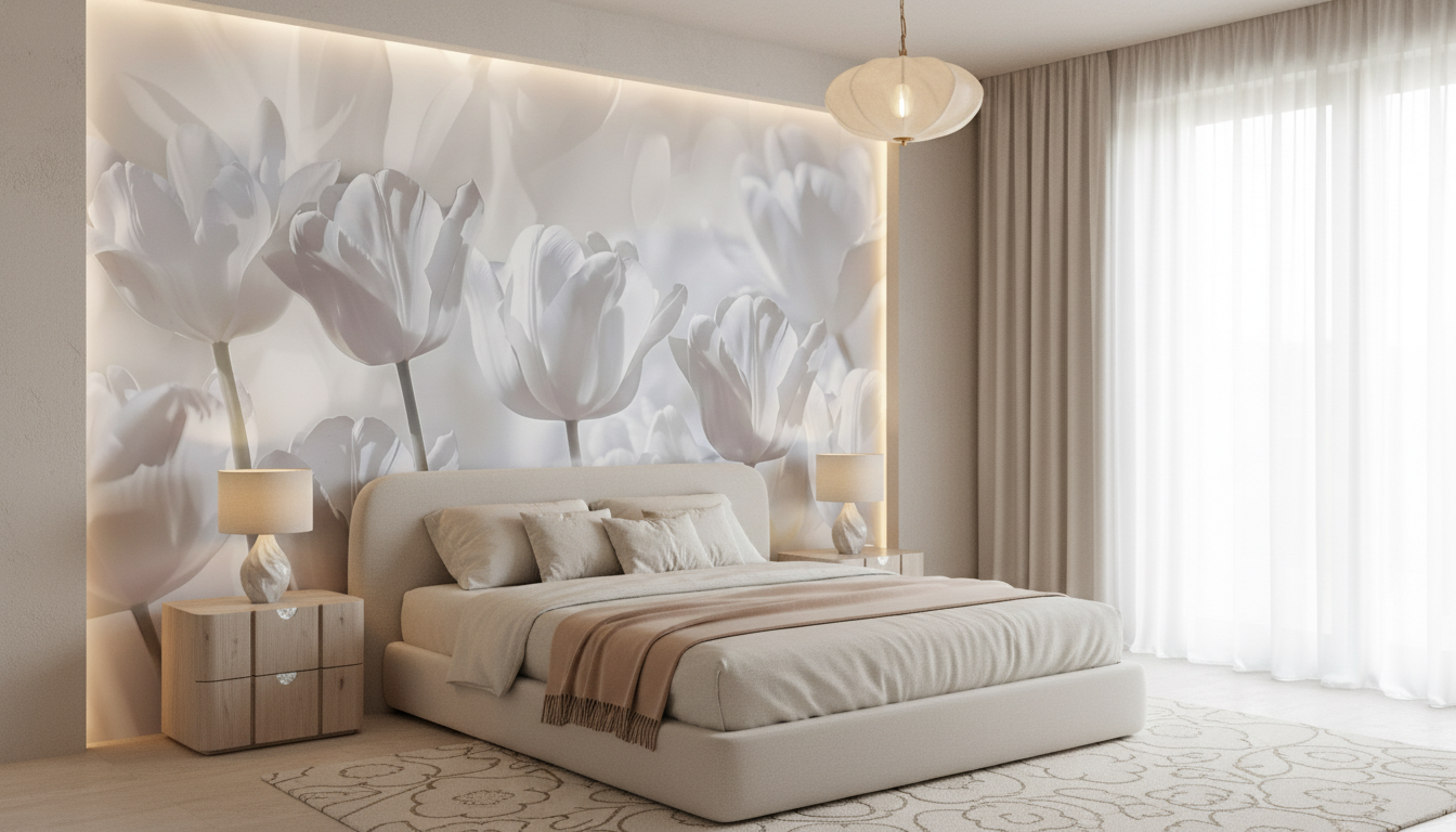 Comme un souffle délicat qui caresse les sens, ce papier peint tulipes transforme votre espace en un jardin éthéré où la pureté règne en maître absolu.