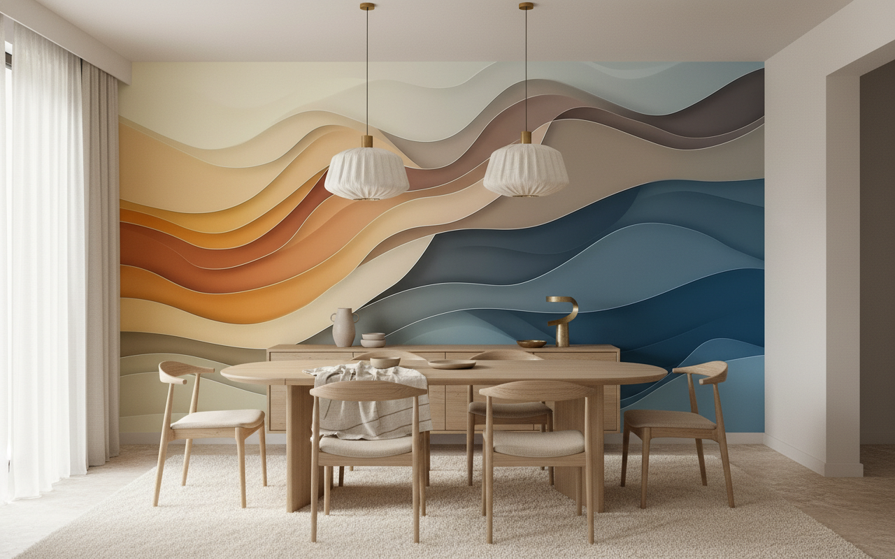 Papier Peint Vagues Fluides Dégradé Chaud Froid Moderne