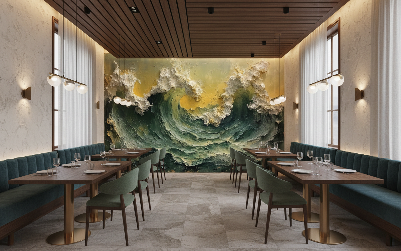 Laissez-vous emporter par la puissance brute de l’océan qui déferle dans votre intérieur, où chaque vague sculptée dans la matière semble prête à vous submerger d’émotions pures et authentiques.