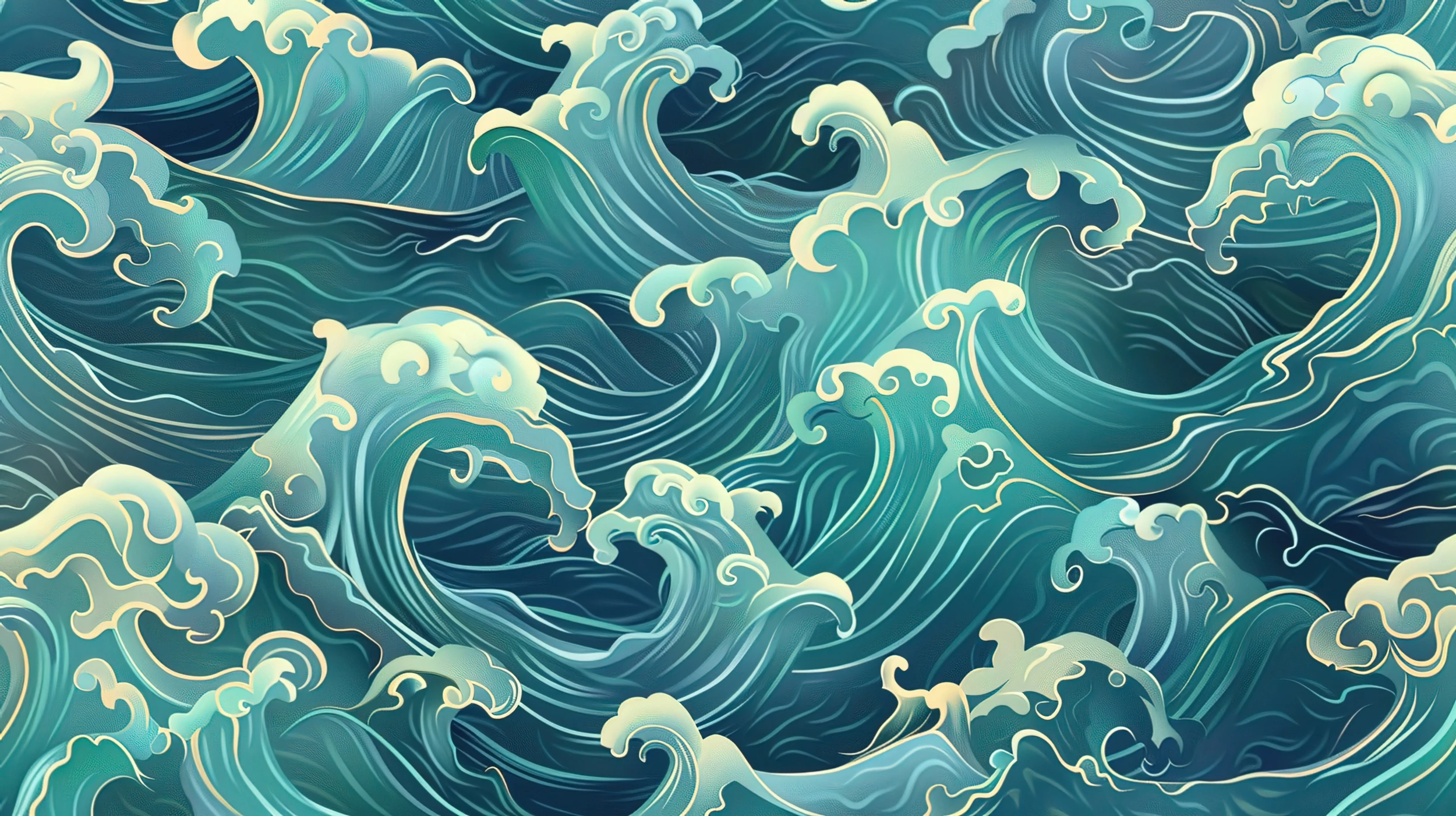 Plongez dans la poésie éternelle de l’océan avec ce papier peint aux vagues stylisées