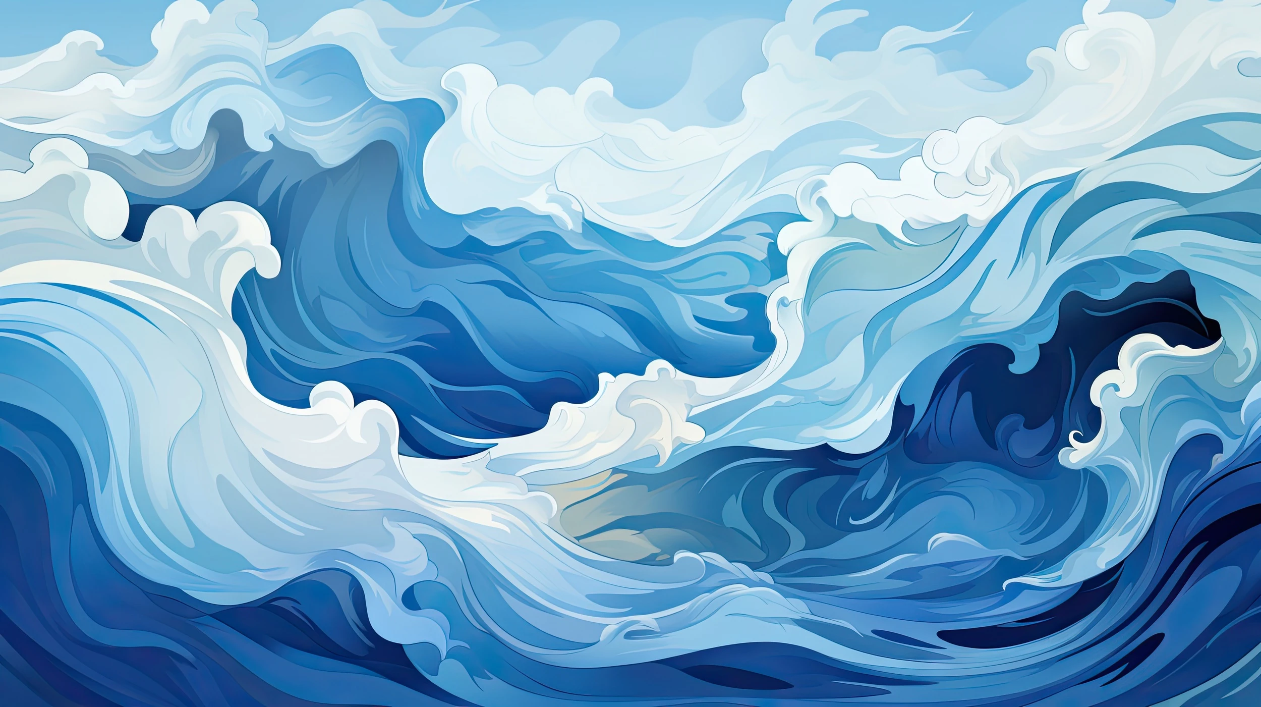 Chaque vague peinte semble animée d’une vie propre, créant un mouvement perpétuel qui captive le regard et apaise l’esprit. Les motifs tourbillonnants évoquent la force primitive de l’océan, tandis que les détails délicats de l’écume apportent une poésie subtile à l’ensemble. Cette fresque murale aquatique transforme instantanément l’atmosphère d’une pièce, insufflant une énergie à la fois dynamique et zen.