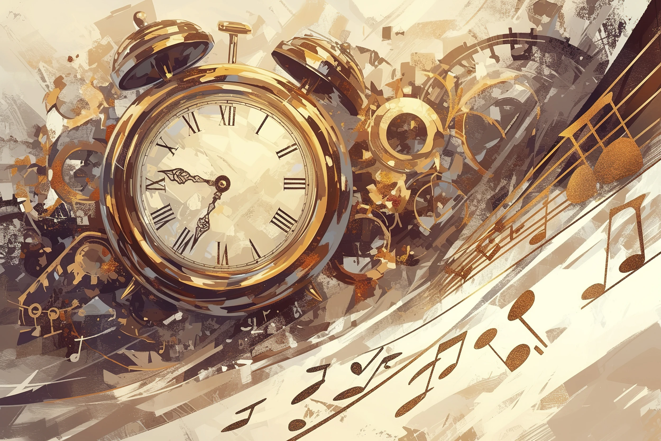 Papier Peint Vintage Horloge Dorée et Partition Musicale Artistique