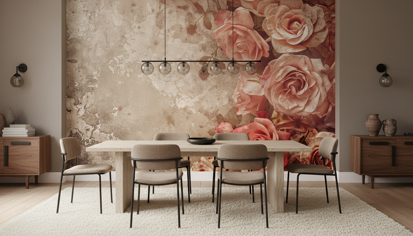 Pour parfaire cette décoration style cottage anglais, intégrez des éléments vintage chinés : miroirs dorés, luminaires en fer forgé, coussins brodés et bouquets de fleurs séchées. Ce revêtement mural artistique s’épanouit particulièrement dans les intérieurs aux influences campagne chic ou boudoir parisien.