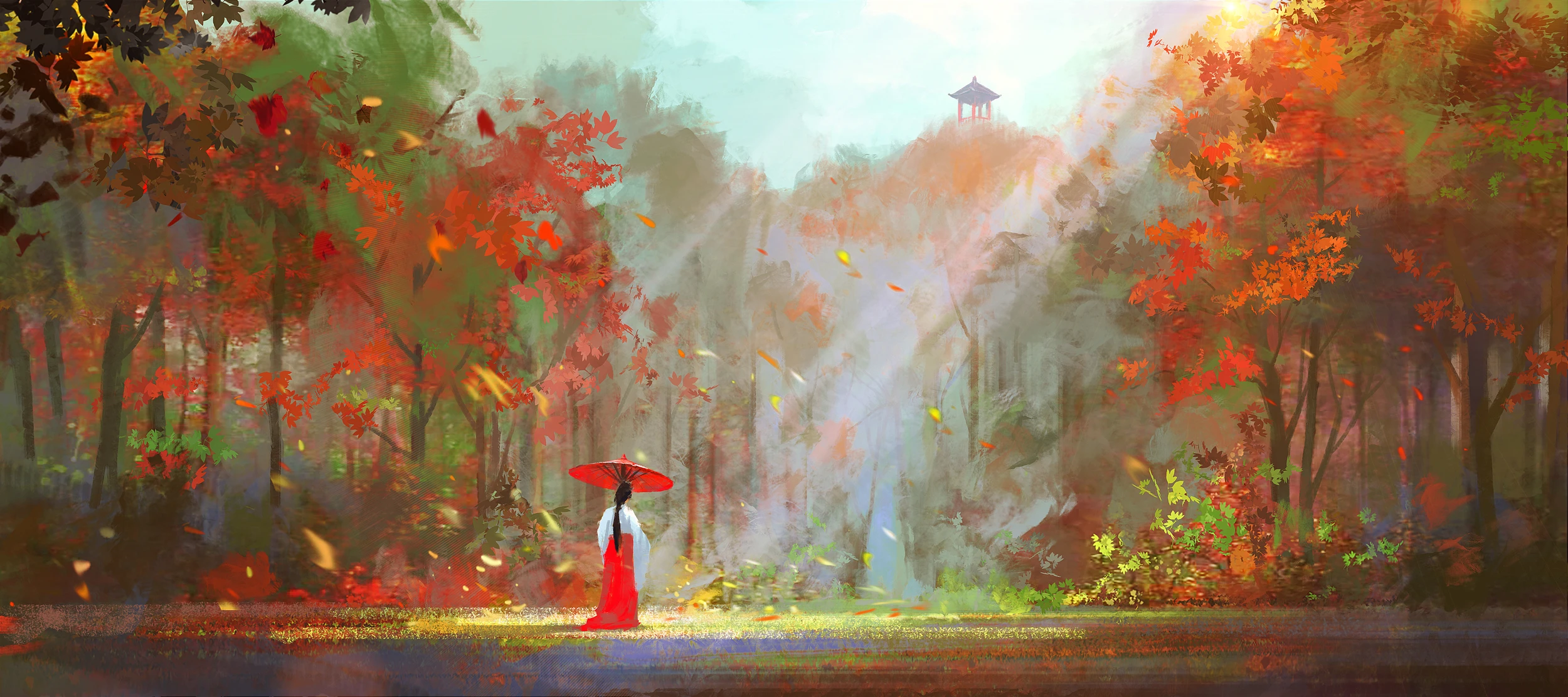Laissez-vous emporter par la magie d’un automne oriental où les feuilles dansent dans la brume dorée, portées par le souffle mystérieux d’une saison éternelle.