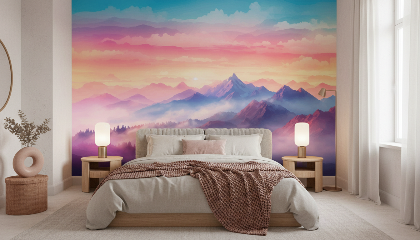 L’atmosphère qui se dégage de ce papier peint panoramique est profondément apaisante et méditative. Il instille une sensation de sérénité absolue, comme si l’on contemplait un paysage de rêve depuis une fenêtre imaginaire. Cette ambiance zen et poétique transforme instantanément l’énergie d’un espace, créant un cocon de tranquillité propice à la détente et à l’introspection. Les nuances douces et la composition harmonieuse génèrent une atmosphère cocooning qui enveloppe la pièce d’une douceur particulière.