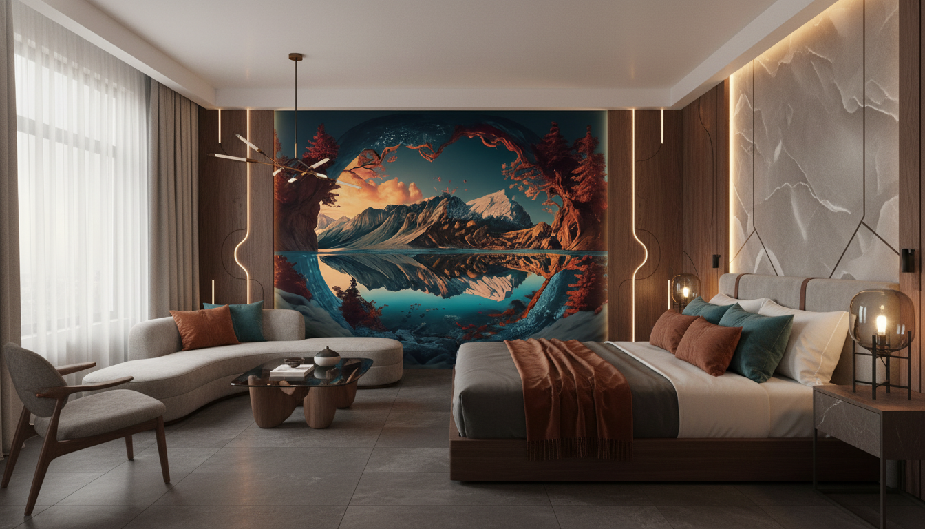 Cette fresque murale paysagère transformera instantanément votre intérieur en sanctuaire de sérénité et d’évasion. L’atmosphère qu’elle génère oscille entre mysticisme nordique et romantisme contemporain, créant un cocon apaisant propice à la méditation et au ressourcement. La profondeur de champ et l’effet de perspective donnent une sensation d’infini qui agrandit visuellement l’espace.