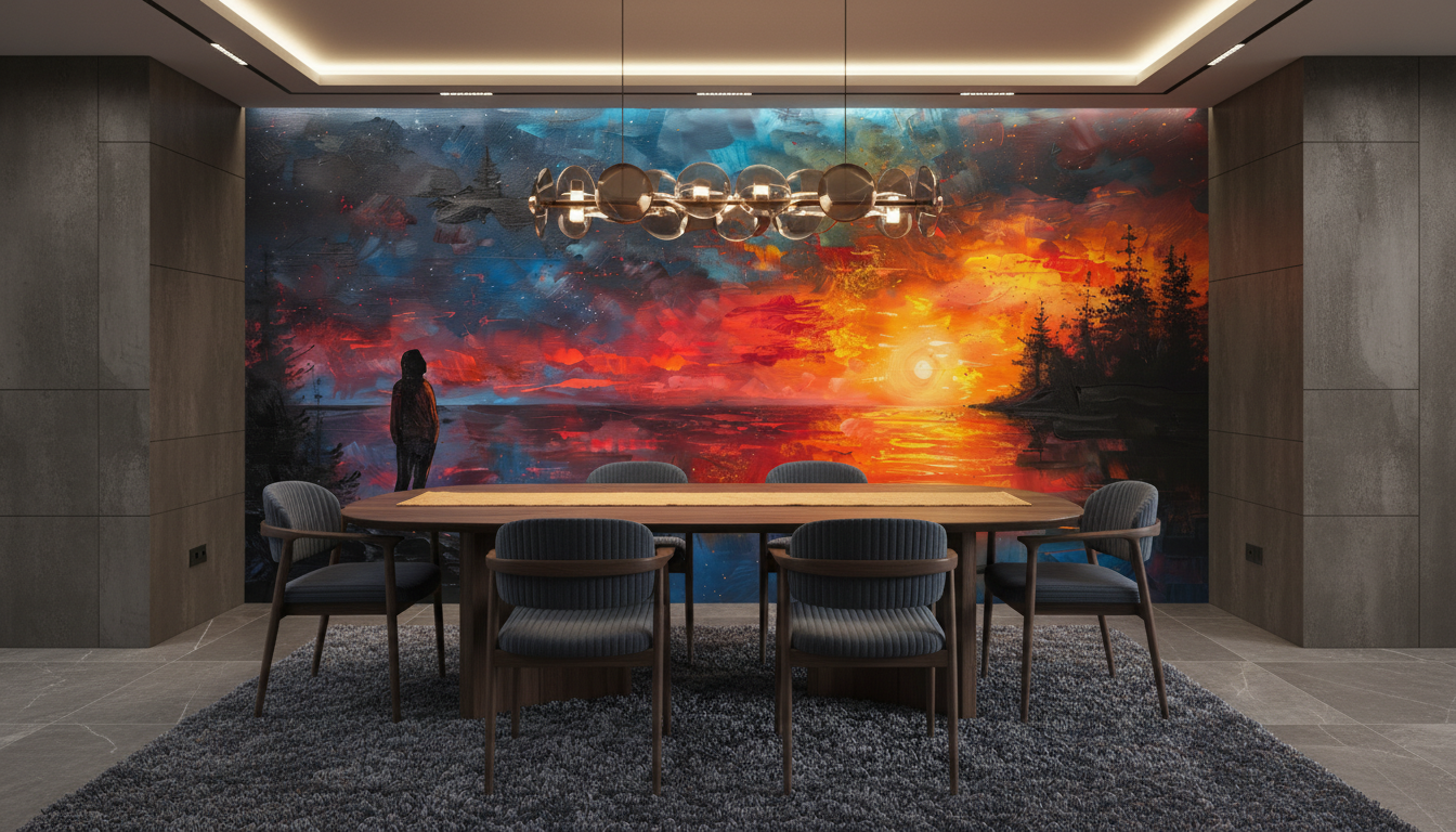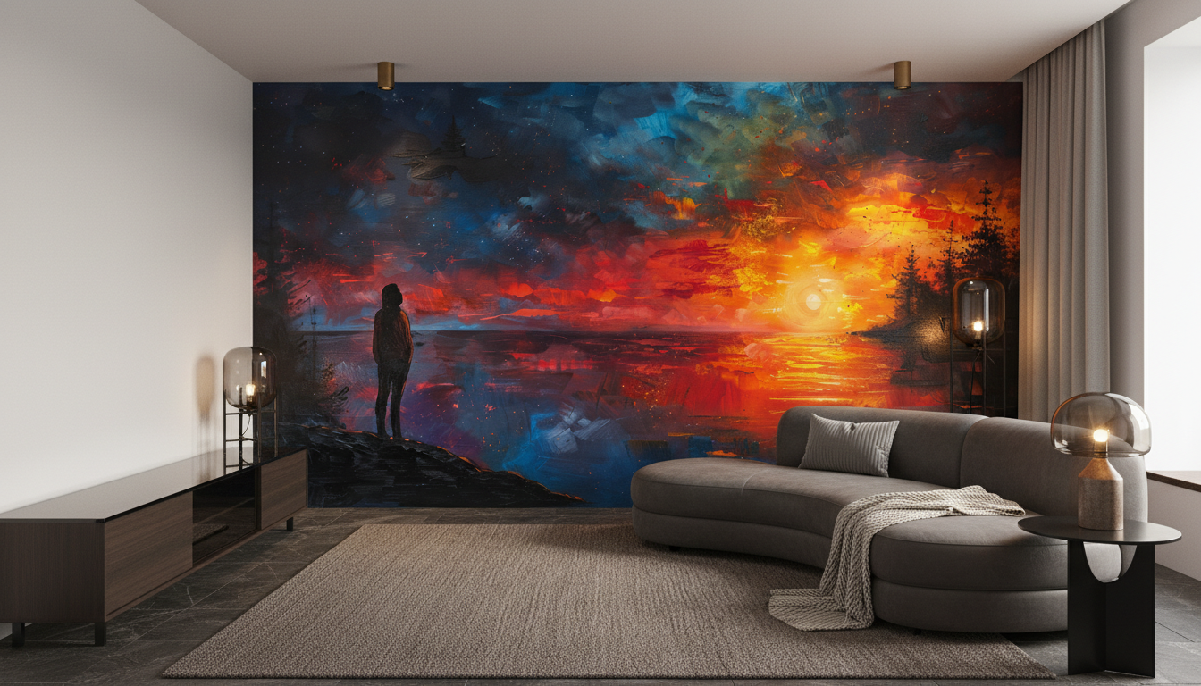 Ce papier peint panoramique artistique s’inscrit parfaitement dans les tendances décoratives actuelles qui privilégient l’art mural immersif et les ambiances contemplatives. Il conviendra aussi bien aux amateurs d’art contemporain qu’aux passionnés d’astronomie et de paysages naturels.